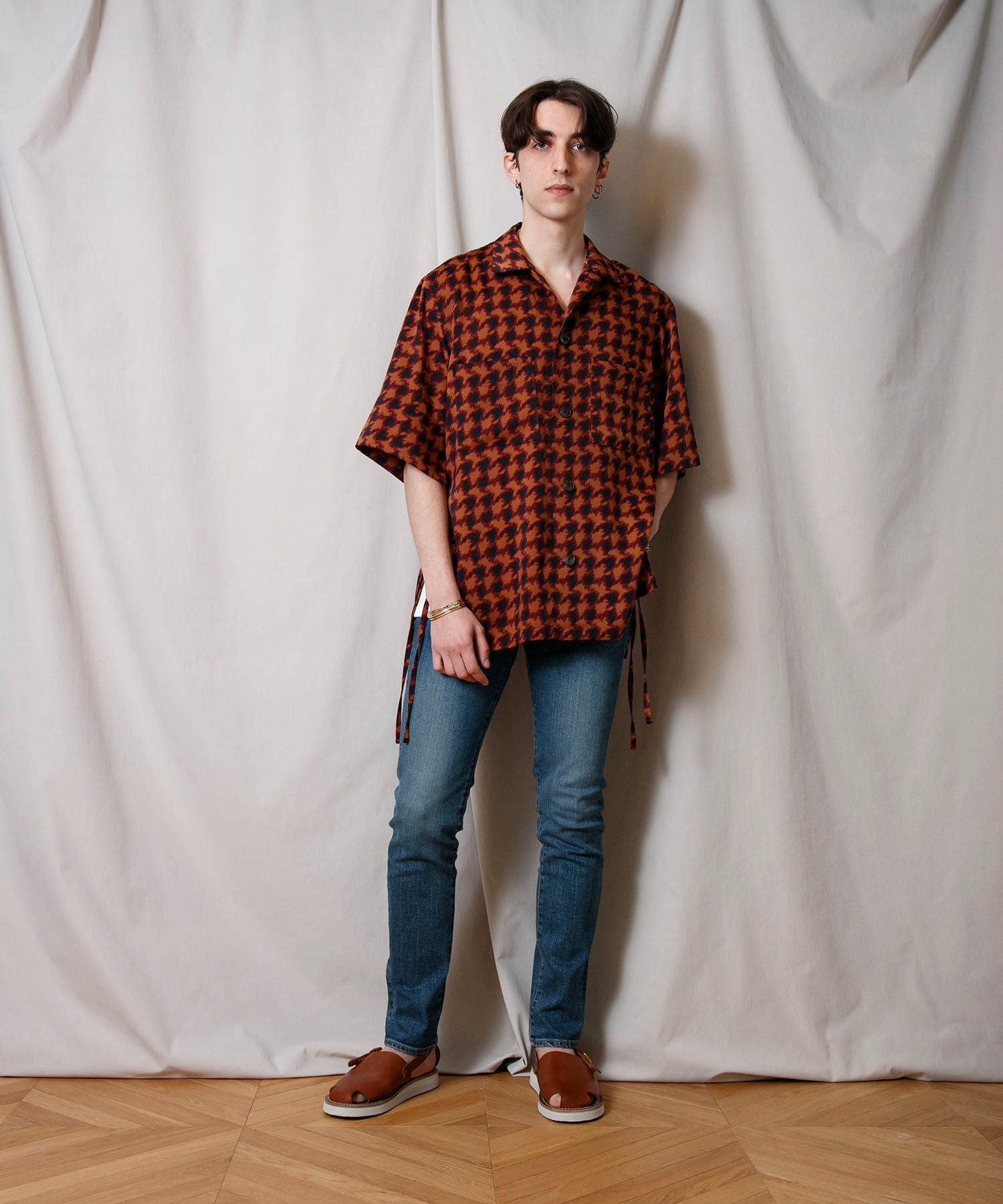 現代的なリラックスしたシルエットに大きめに貝ボタンを使用している為に、