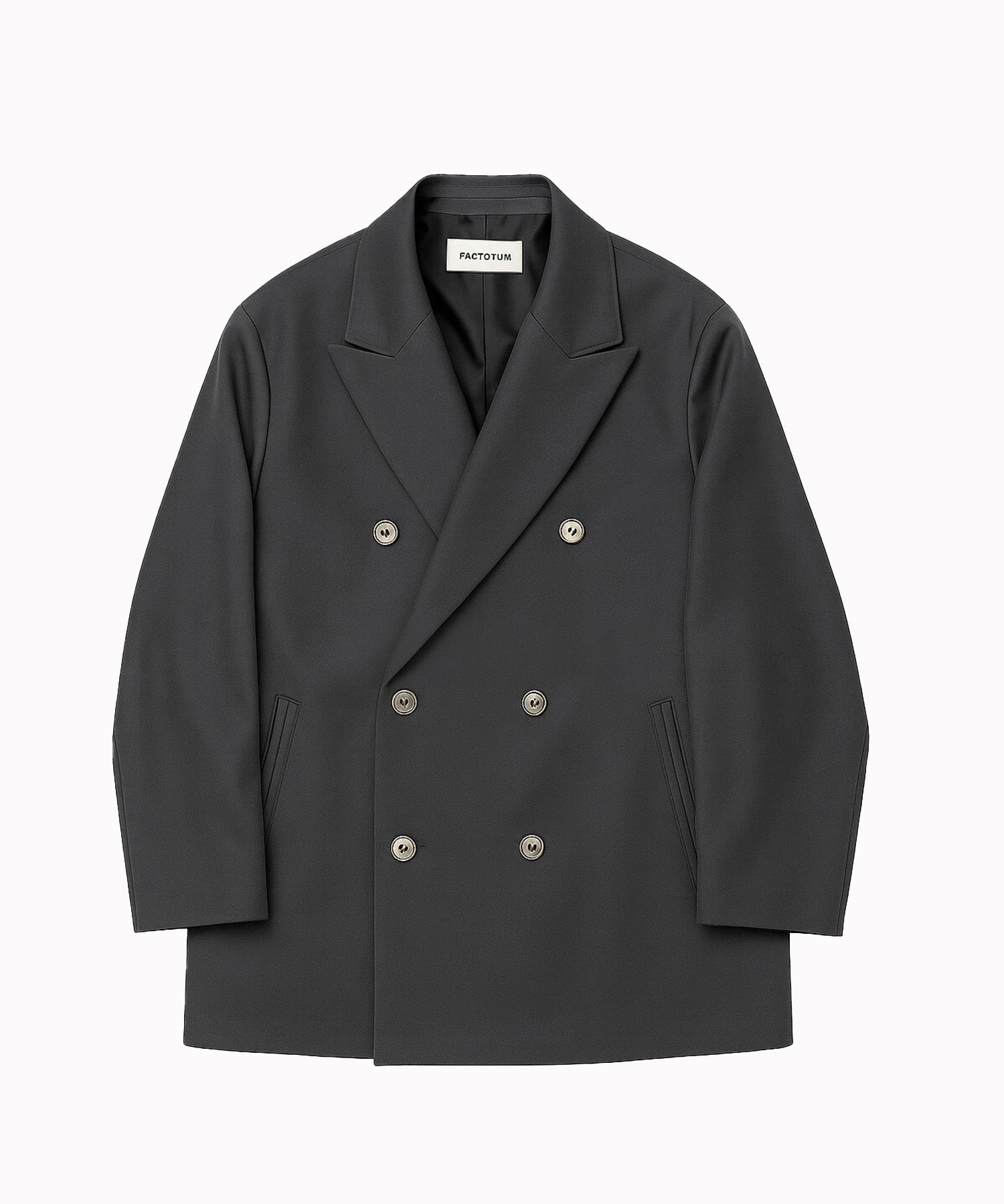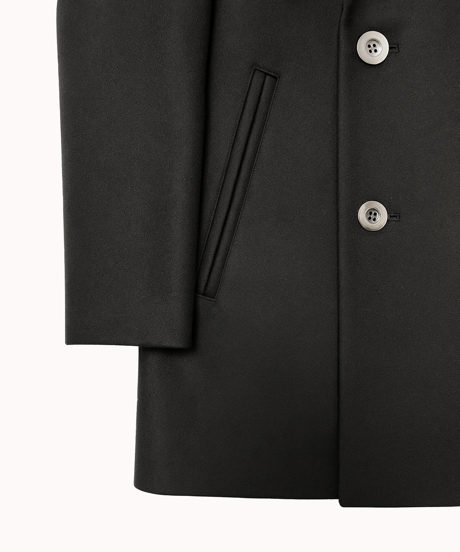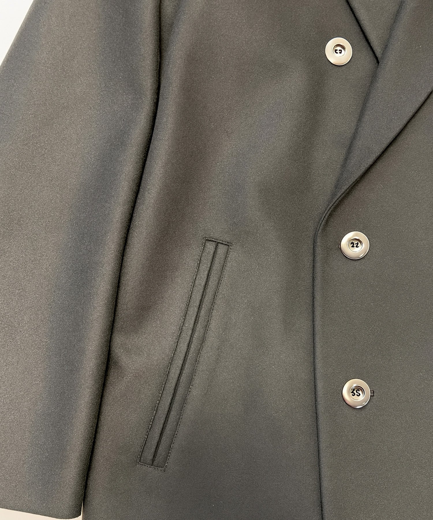 両スラッシュポケットがPコートのようなアウターとしても着こなせる。