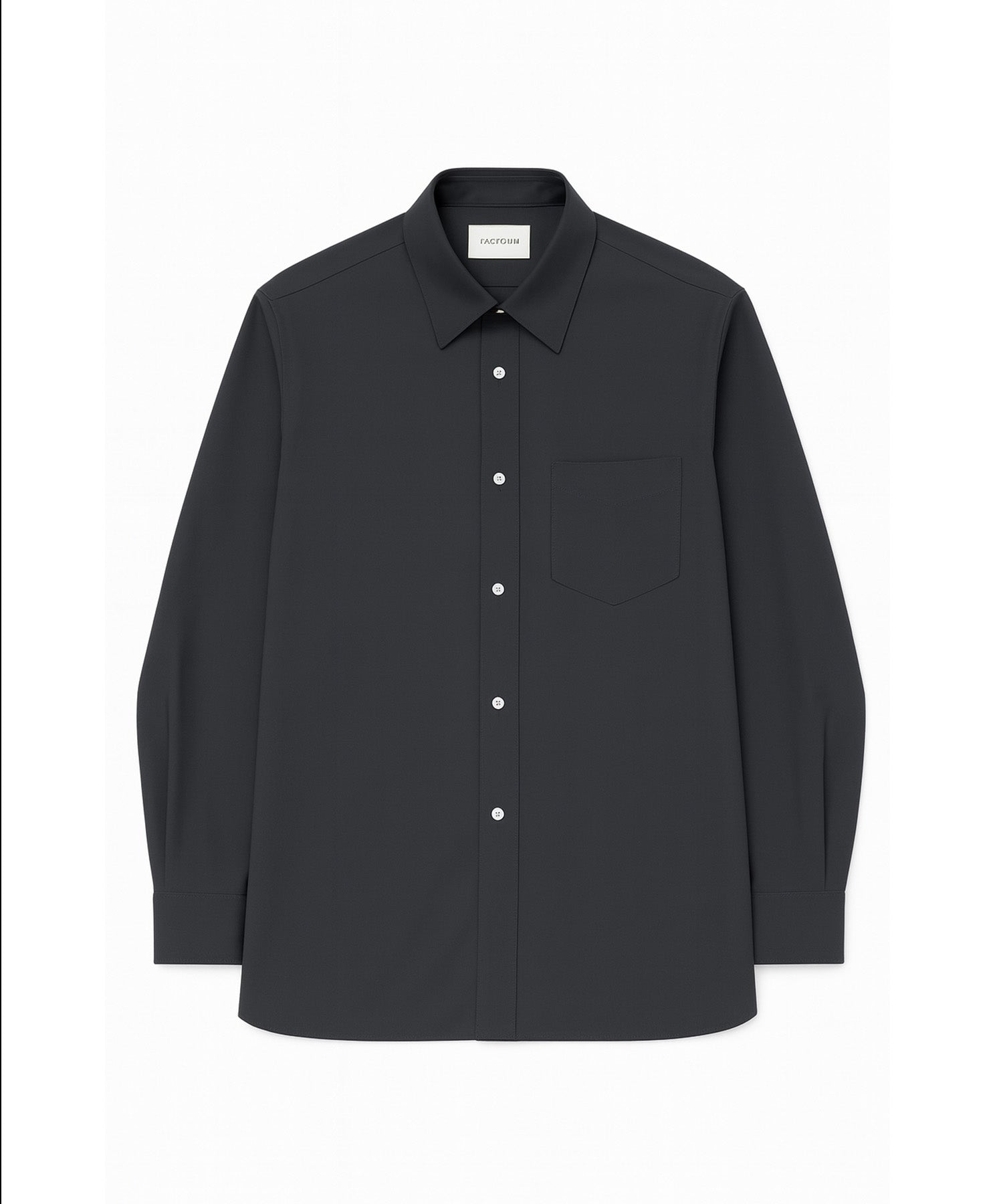 レギュラーカラーでバックヨークに使いやすいハンガーループ付き、サイドスリットが深めになっている。