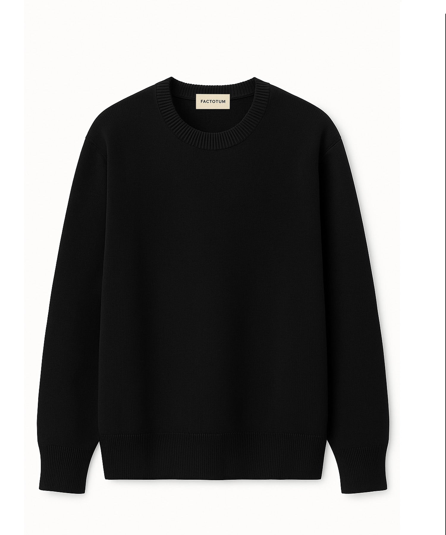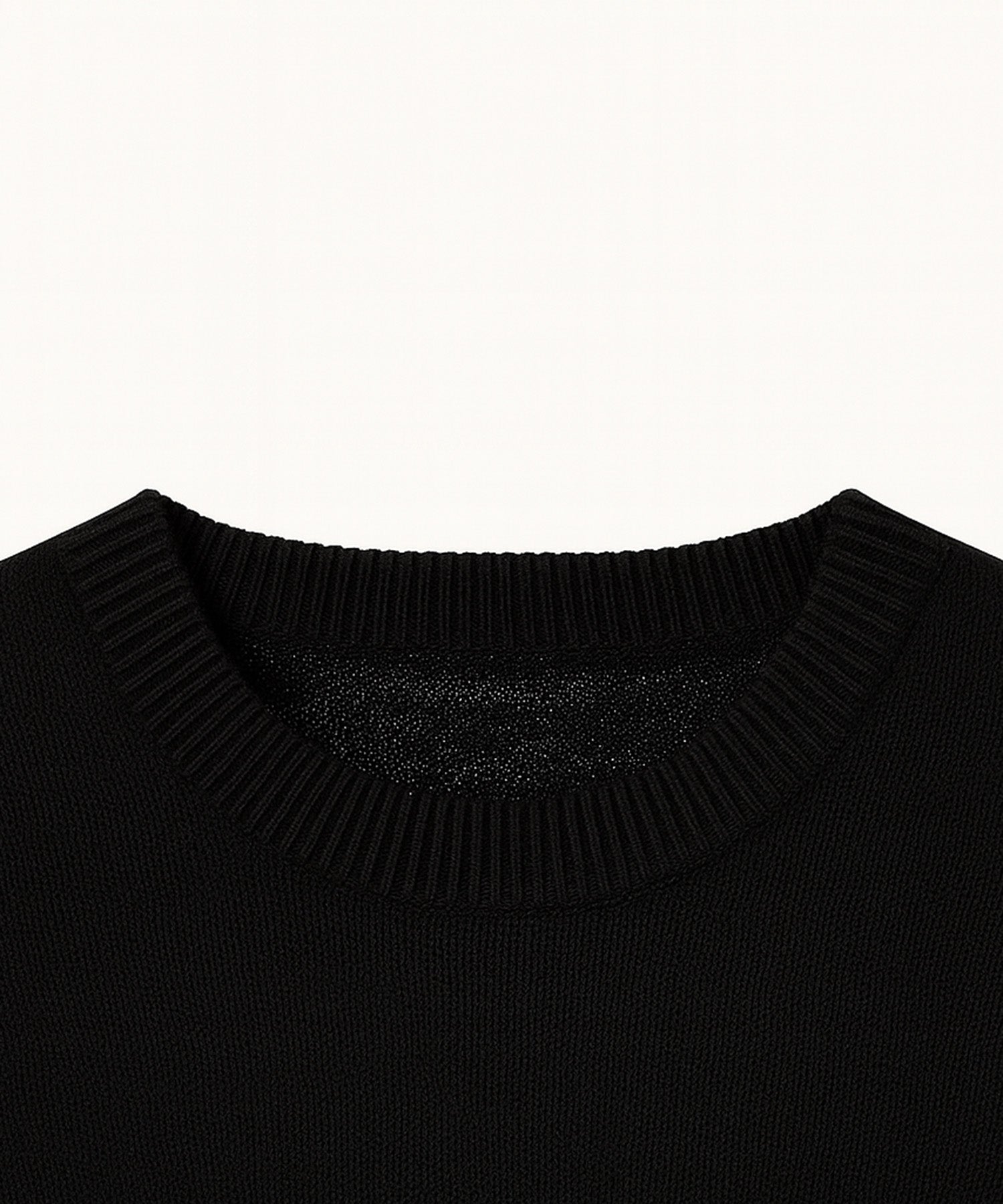 ミドルゲージ鹿の子編みソリッドクルーネットニット。